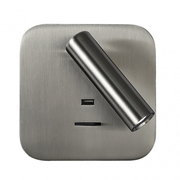 Aplique serie GIOTTO CUADRADO de color NÍQUEL. Está realizado de metal. Con TECNOLOGÍA LED INTEGRADO. De diseño moderno y minimalista. Tiene un FOCO ORIENTABLE de 3w y 150 lúmenes en color 4000K blanca neutra que se activa con un interruptor. El foco tiene una medida de 11 cm y es orientable en 350º, además de plegable en 90º. Tiene unas dimensiones en general de 14x14x12 centímetros. Incluye un PUERTO USB tipo A (funciona sin tener la luz encendida). Este modelo lo tenemos también disponible redondo, en color blanco y en color negro.