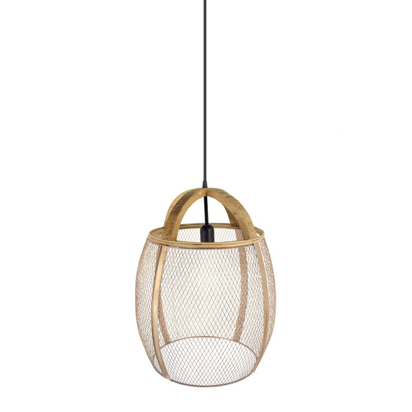 Colgante de la serie COIMBRA realizado en metal y madera de color NEGRO/CUERO. De diseño y forma muy original y decorativo, se compone de un cuerpo ovalado realizado con una rejilla metálica y con detalle en madera, mezclando materiales y texturas propio de los nuevos estilos de decoración, ideal para estancias decoradas con el nuevo estilo vintage rústico o minimalista, el enrejado deja traspasar la luz creando un ambiente cálido y acogedor, también característicos de las zonas mediterráneas avocadas al descanso y la meditación, utilizándose este estilo para relajar zonas de trabajo y hogares. Posee un portalámparas E27. Bombilla no incluida. Sus dimensiones, regulables en altura, son de 47<,175x37x37 centímetros.