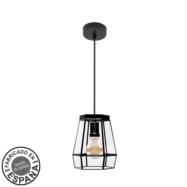 Colgante de una luz de la serie GUIA realizada en metal de color NEGRO y cristal. Piezas únicas y artesanales, producto nacional HECHAS A MANO con un diseño original y elegante, destacan los dibujos geométricos de su tulipa recordándonos a las lámparas de cristal emplomado, mezclando materiales y texturas resultando una composición muy decorativa. Posee un portalámparas en E27. Bombilla no incluida. Ideal para salones, comedores y salas de estar decorados con distintos estilos de decoración, desde el Boho Chic y Vintage como el clásico o rústico. Se recomienda completar con una bonita bombilla Vintage de filamentos para preservar su estética, como la de referencia 141351181 ó 141351081 que es la que apreciamos en la foto. Tiene unas dimensiones, regulables en altura, de 35<,88x18x18 centímetros. Modelo disponible en regleta de tres luces, plafón de tres luce y colgante, todos ellos a elegir con terminación en blanco, negro o cuero, para escoger el que mejor se adapte a su decoración.