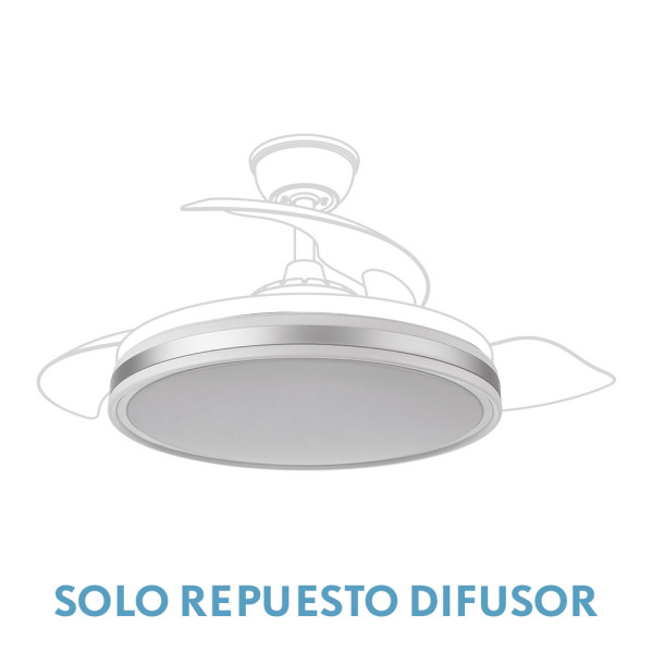 Repuesto difusor para ventilador BAYOMO grande de 108D en color NIQUEL. Realizado en policarbonato. Viene difusor + embellecedor color níquel.