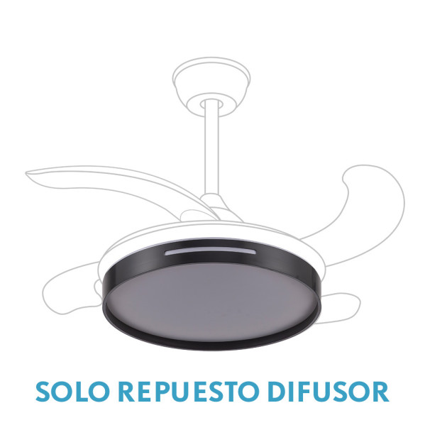 Repuesto difusor para ventilador MBATIS 91,4D en color NEGRO. Realizado en policarbonato. Viene difusor + embellecedor color negro.