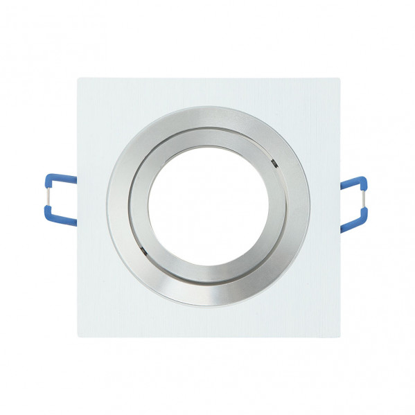 Empotrable orientable serie CENOTE con forma cuadrada, de color BLANCO/CROMO. Realizado en aluminio. Su dimensión es 2×9,2×9,2 centímetros. Corte REDONDO para su instalación de 8 centímetros de diámetro. Posee un portalámparas GU10. Bombilla no incluida. De diseño moderno, encontrándose, en esta serie, una gran variedad de combinaciones de colores como en Champagne/Cromo, Aluminio/Cromo, Wengué/Cromo, Blanco/Cromo, Cuero y Blanco. También disponibles en forma redonda, adaptándose a lo que más combine con su decoración.