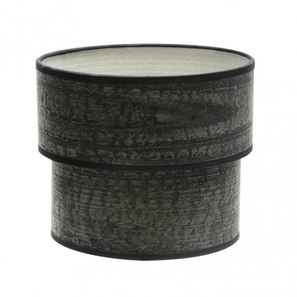 Pantalla de la serie SMILE de color MADERA NEGRA. Realizado en material textil. Diseñada para cogida a un portalámparas E14. Formada por dos cuerpos dispuestos por tamaños descendentes de mayor a menor, resultando una composición de diseño muy original y moderno, recordando a la madera, ideal para sobremesas y decorar en salones, dormitorios, comedores y zonas de trabajo. Tiene unas dimensiones de 18x16x16 centímetros. Podemos encontrar en esta serie varios tamaños y diseños, todos realizados en tejidos que nos recuerdan a madera clara, madera oscura, madera gris, óxido y madera negra.