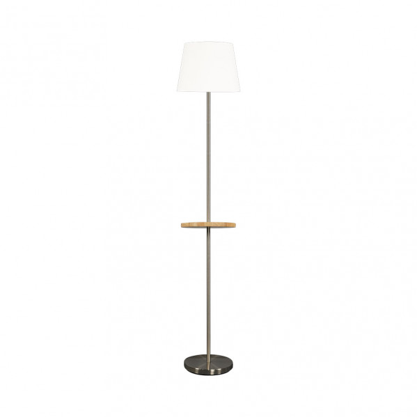 Pie Salon Acero 1xe27 Niquel C/pantalla Blanca C/mesita Aux. Incorporada 168x30x30 Cm