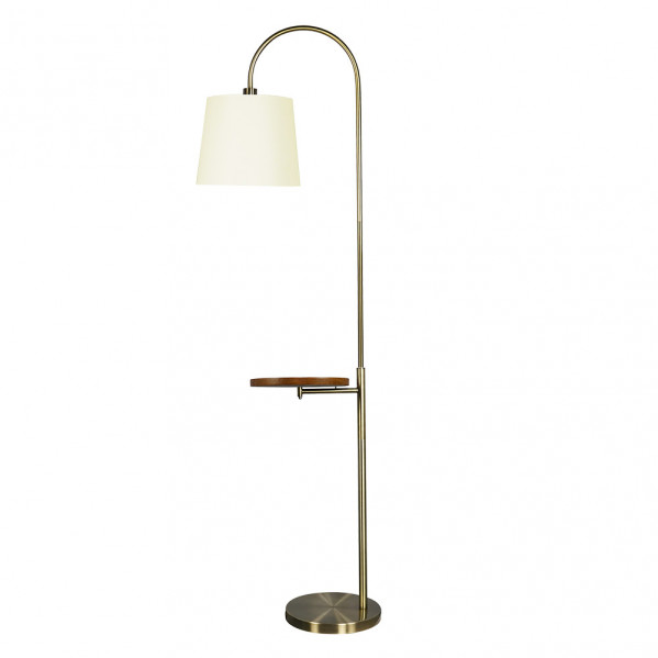 Pie Salon Marfil 1xe27 Cuero C/pantalla Beis C/mesita Madera Incorporada 180x30x52 Cm