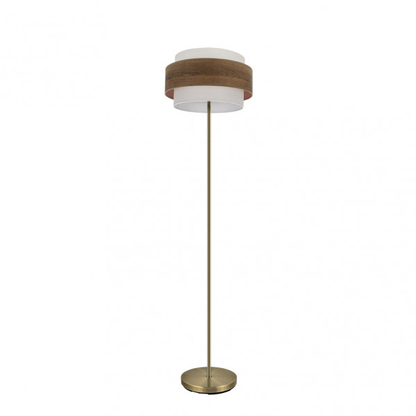 Pie de salón de diseño de la serie MYRIAM de color CUERO/MADERA OSCURA. Realizado en metal y textil, de estilo moderno, presenta una combinación de colores y texturas, imitando a la madera, resultando una composición muy original y decorativa para iluminar en cualquier rincón de dormitorios, salones, comedores y zonas de trabajo, creando un ambiente diferente y acogedor. Posee un portalámparas E27. Bombilla no incluida. Tiene una dimensiones de 166x40x40 centímetros. En esta serie, encontramos a juego los colgantes de 40 y 50 centímetros de diámetro, el pie de salón, aplique y el sobremesa, todas las versiones combinando el blanco con madera clara, madera gris, madera oscura ó madera negra, una amplia gama para elegir el que mejor se adapte a su decoración