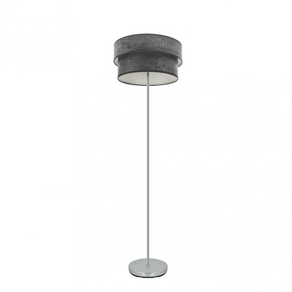 Pie de Salón de la serie SMILE de color CROMO/MADERA NEGRA. Realizado en metal y textil. Posee un portalámparas E27. Bombilla no incluida. Su pantalla está formada por dos cuerpos dispuestos por tamaños descendentes de mayor a menor, resultando una composición de diseño muy original y moderno, recordando a la madera, ideal para decorar en rincones de salones, dormitorios, comedores y zonas de trabajo, creando un espacio especial. Tiene unas dimensiones de 162x40x40 centímetros. En esta serie podemos encontrar los colgantes de 50 y 40 centímetros de diámetros, sobremesas, apliques y pies de salón, todos realizados en tejidos que nos recuerdan a madera clara, madera oscura, madera gris, óxido y madera negra.