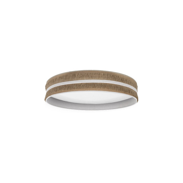 Plafón de la serie NATALIA con pantalla confeccionada en tela de SACO y lino rayado BLANCO. Compuesto por pantalla y plafón de la serie CALIGULA. Posee TECNOLOGÍA LED INTEGRADO con 72 watios de potencia, 5616 lúmenes y TRES TEMPERATURAS SELECCIONABLES DESDE EL INTERRUPTOR DE LA LUZ (3000ºK-4000ºK-6500ºK), luz cálida, blanco neutro y blanco frío, con lo que aporta un gran ahorro de energía. Destaca su original pantalla cilíndrica con una doble pasamanería de flecos y cinta de colores al igual que su interior, resultando una serie moderna y muy decorativa. Ideal para dormitorios, entraditas, salones y salas de estar, compatibles tanto con decoraciones rústicas como clásicas o vintage. Tiene unas dimensiones de 13x50x50 centímetros. En esta serie podemos encontrar colgantes, sobremesas, apliques, plafones y pies de salón, todos combinando el tejido de saco con lino blanco, naranja, negro, beis ó turquesa, y con monturas en negro, blanco, cuero ó níquel.
